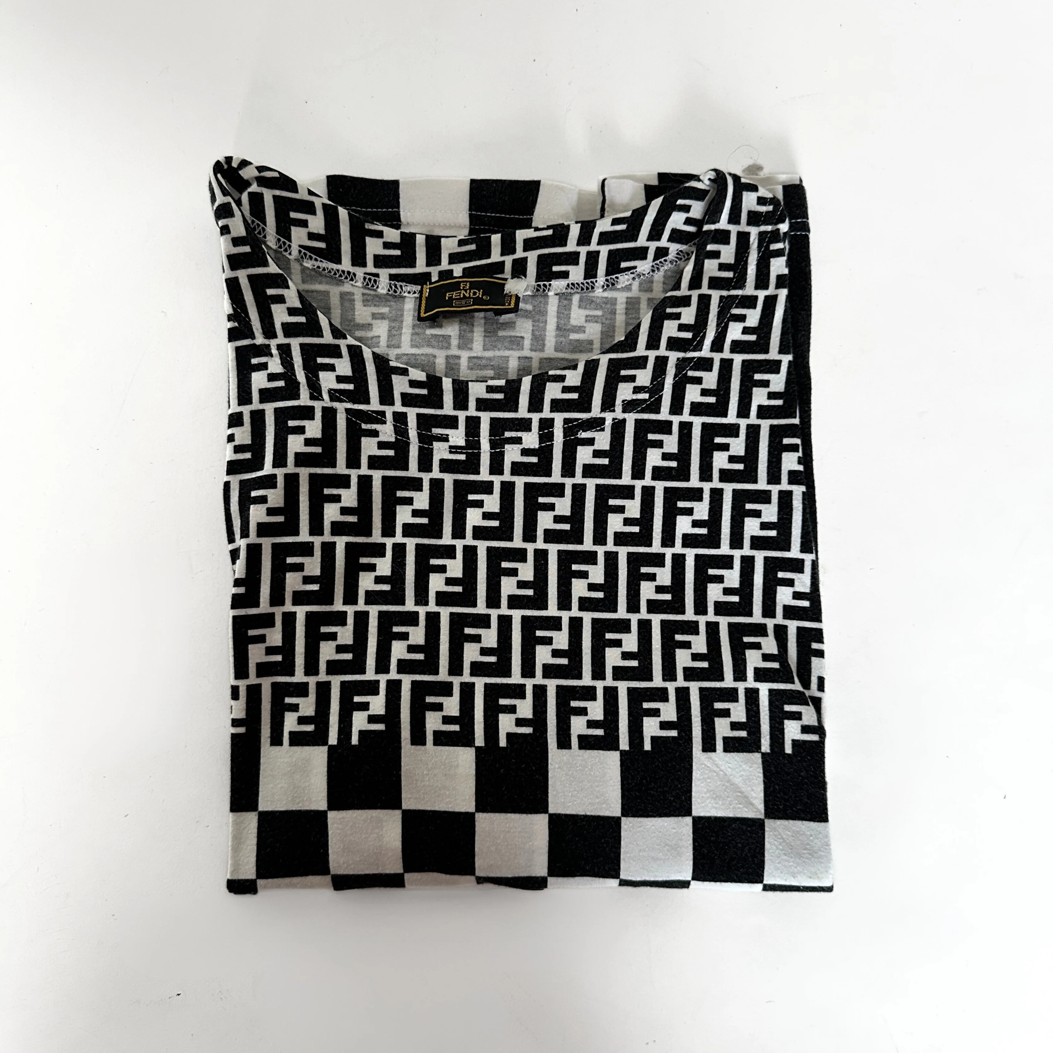 Fendi Logo T-shirt in white with black. This t-shirt is made of 100% Cotton. This t-shirt is in size Medium. This t-shirt can be perfectly combined with jeans or a skirt. This t-shirt can also look nice underneath a blazer. The overall condition of this t-shirt is good.